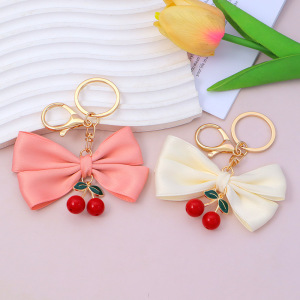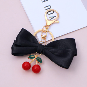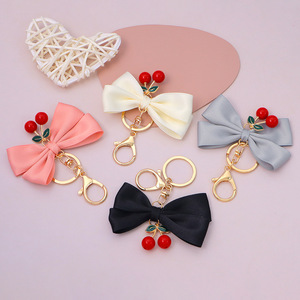 新しいクリエイティブ弓チェリーキーホルダー女性のファッションライト高級バッグペンダント車のキーチェーンギフト