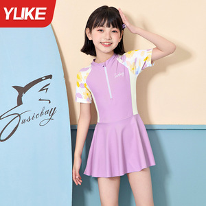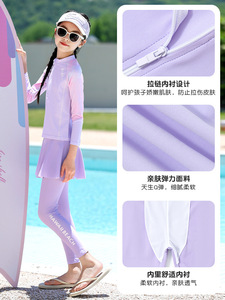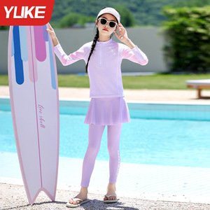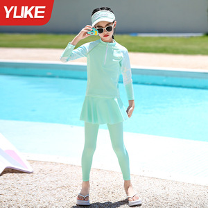 子供水着女の子スプリット長袖ズボン日焼け止め水着 2025 新しい中型および大型子供女の子温泉水着