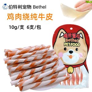 21cm チキンラップ牛革 2色スパイラル歯固めスティック 2本