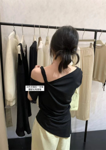 METO デザインニッチオフショルダー Tシャツ女性のための 2025 夏の新しい半袖ベベルスリムカジュアルトップ