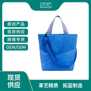 カラフルで環境に優しい揉み加工デュポン紙ショルダーバッグオリジナルハンドバッグテフロンメッセンジャーバッグ通勤ポータブルトートバッグ
