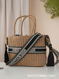 2025新型百合大容量草編みショルダーバッグ女性リボン編みレジャーバッグ外出休暇バケツバッグ