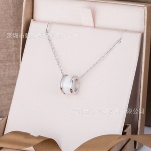 s925 スターリングシルバー Baojia チャリティスモールウエストスプリングブラックとホワイトセラミックネックレス CNC クラフトファッションライト高級鎖骨チェーン