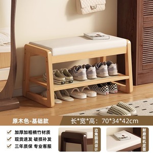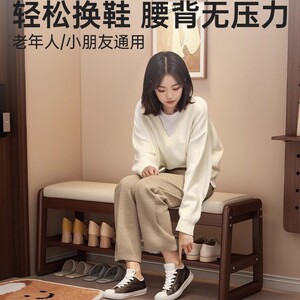 玄関に置ける無垢材の靴交換スツール、靴を履くための収納ラック、モダンでシンプルな玄関の小さな靴キャビネット