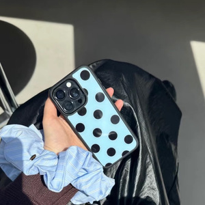 趙魯思と同じスタイルの水玉模様の黒縁パッチ付きスマホケース、Apple 16p/iPhone17/12/11/X/に適用