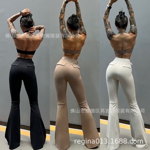 ヌードフィットネスヨガパンツフレアパンツレディースタイトハイウエストヒップリフト痩身ワイドレッグダンススポーツクロスボーダー