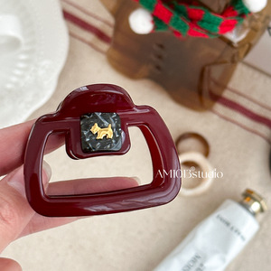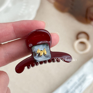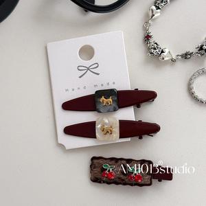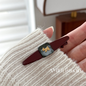夏季新款安可拉红可爱小狗一字夹树脂刘海ins边夹碎发夹女