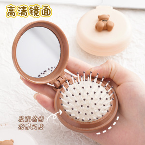 かわいい小さなコーム、子供や女の子向けのポータブルミニエアクッションコーム、折りたたみエアバッグコーム、マッサージコーム、ミラー一体型