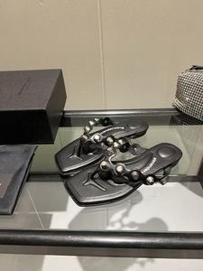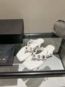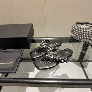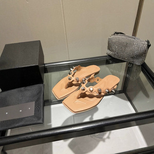 夏の新しいスタイルの女性用本革リベットスクエアトゥビーチサンダル、フレンチスタイルの多用途アウターウェアフラットビーチオープントゥサンダル