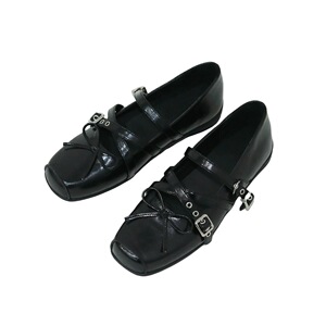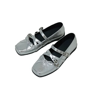 銀色のバレエの靴の女性の浅い口の2025春の新型の平の本革の柔らかい底のフランスの角の頭のメアリーの珍の靴