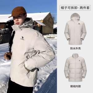 キャメルグースダウンジャケット秋冬カップルスタイルスリーインワンジャケット防水暖かい登山服卸売
