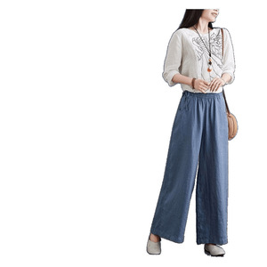 垂感阔腿裤女秋季新款高腰棉麻长裤休闲宽松百搭亚麻料直筒拖地裤