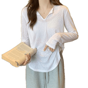 韓国スタイルブルーカラー長袖シャツ女性のための 2025 新しい夏薄いアイスシルク日焼け止めシャツ空調カバーアップ服