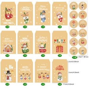 2026 クロスボーダークリスマス封筒バッグキャンディーバッグクラフト紙小さなギフトサプライズ収納袋 48 個セット