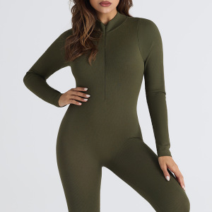 新しいジッパー長袖ヨガウェアジャンプスーツスポーツフィットネスダンスタイトなジャンプスーツ女性のアウターウェア