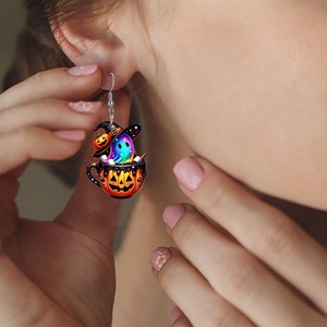 越境新品熱売ハロウィーンアクリルイヤリング虹魔法幽霊カボチャ壺アクリルイヤリング装飾