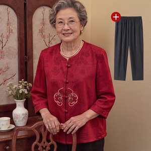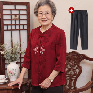 おばあちゃん披露宴ドレス中高年夏服服结婚式に参加ママ国风老人诞生日大寿服