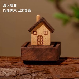 車のエッセンシャルオイルディフューザー木製小さな家無火アロマセラピー無垢材装飾品ディフューザー寝室オフィス装飾品