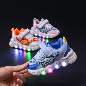 2025春季新款卡通男童恐龙运动鞋女童网面透气鞋中小童宝宝灯鞋潮