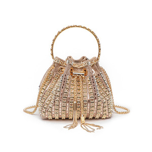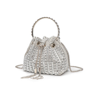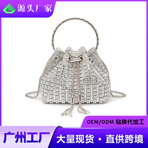 クロスボーダーの晩餐会の包みの女性の2025の新型の気質はダイヤモンドのハンドバッグのチェーンを入れて簡単でファッション的ないっぱいのドリルのフリンジのバケツの包みを入れます。