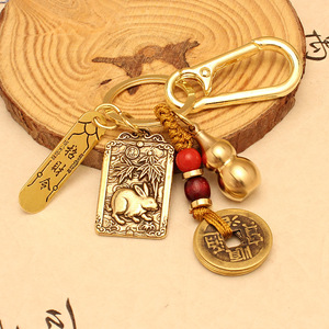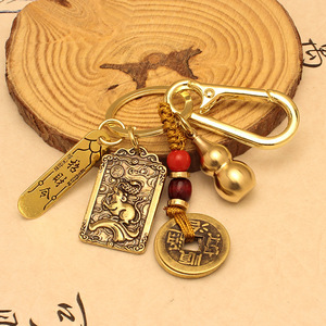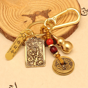 真鍮趙公明ペンダント武富貴五帝銭ひょうたんキーホルダーペンダント車のキーホルダー