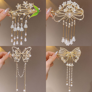 蝶結びタッセルヘアクリップ 女性用 後頭部用 2025年新作 高級ツイストワンワードクリップ 高級感のあるヘアクリップ ヘアアクセサリー
