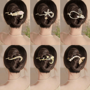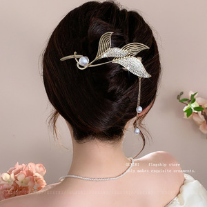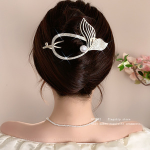 22 ゴールデンフィッシュテールラインストーンヘアピン 11.5cm