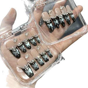 Mudie 純粋な手作りの光療法ウェアラブルネイル、キャットアイバタフライフレンチマニキュア、ダイヤモンドがちりばめられたライトラグジュアリーハイエンドウェアラブルネイル