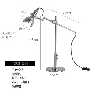 ミディアム-TD04 クリップテーブルランプ-ブライトニッケル