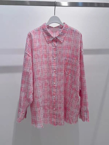 2025夏の新型婦人服のゆったりとしたカジュアルな格子縞の長袖シャツの上着4g 5120921 4g 5120922