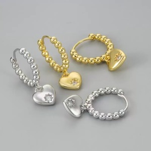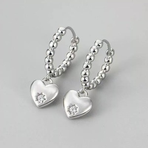 ラウンド ビーズ ラブ イヤリング ホワイトゴールド