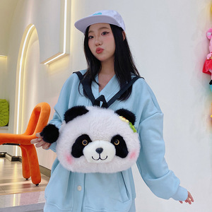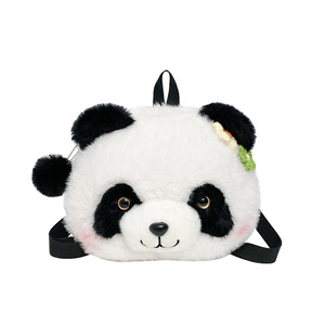 かわいいパンダの人形は斜めに新しい柿のパンダのぬいぐるみのリュックサックを包んで子供の人形のリュックサックに合わせます。