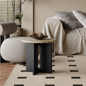 小戸型レトロ原木家庭用リビングソファー洞石辺寝室ベッドサイド移動円卓ベランダ小茶卓
