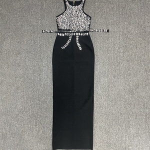 ヨーロッパとアメリカの国境を越えた新しいファッションセクシーなダイヤモンドがちりばめられたベストヒップカバースカートハイエンド包帯婦人服スーツスカートドレス