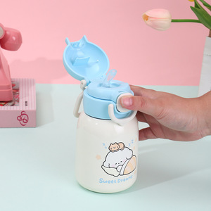 双饮316不锈钢保温杯手提学生水杯高颜值女生吸管杯大容量儿童杯
