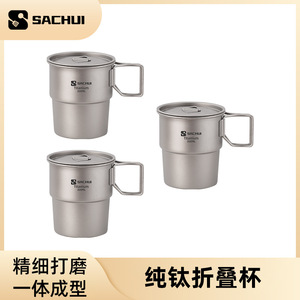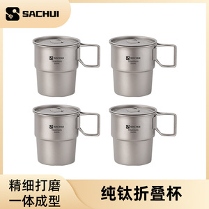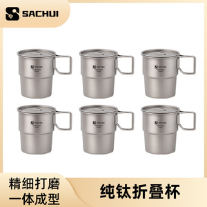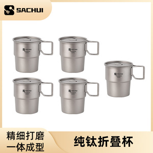 アウトドア純チタンウォーターカップ、キャンプ用チタンカップ、チタンポータブルティーカップ、コーヒーカップ、チタン合金折りたたみマグカップ、軽量