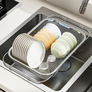 【Lサイズ】201ステンレス伸縮水切りカゴ