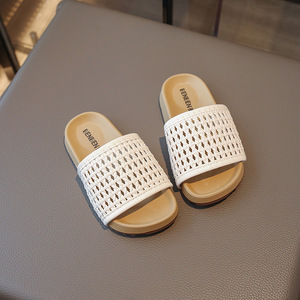 レトロ中空オープントゥラウンドトゥフラットスリッパ女の子のためのアウターウェア 2025 ファッションカジュアルビーチサンダル