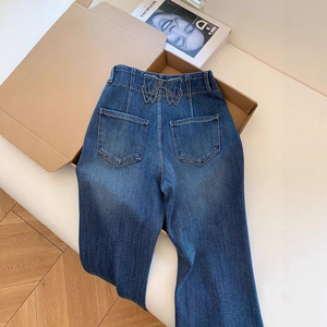 蝶結びダークブルーデザインマイクロフレアハイウエストジーンズスリムパンツ女性用2025新しいハイエンドスタイル