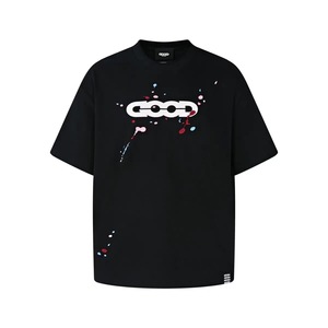 25ss オールドホワイト GOOD ニッチトレンドブランド スプラッシュインク ラウンドネック 男女兼用 カップル 半袖 スター リトルレッド ブロガー 同風 Tシャツ
