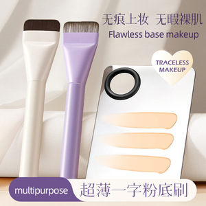 ワンラインファンデーションブラシ、フラットヘッド、跡が残らない、パウダーフリー、プラスパレット、リキッドファンデーション、ベースメイク、メイクアップマスクブラシ
