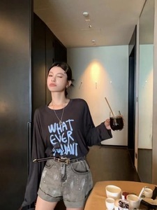 クールで微透け感のあるマスク日焼け止めTシャツ新しいルーズレイジーレターグラフィティプリントラウンドネック長袖空調ブラウス