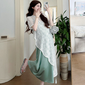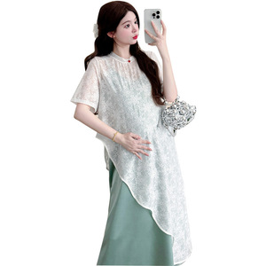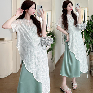 2025年夏の実物写真、イレギュラーレースブラウススカート+セクシーサスペンダードレス、トレンドママスーツ