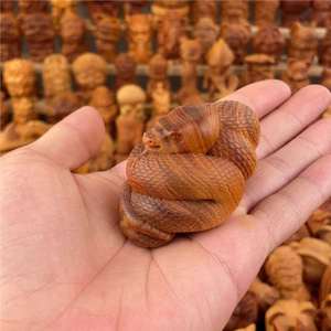 天然シダーウッド彫刻、高油古材、蛇の手持ち品、干支蛇の意味の装飾品、創造的な装飾品、工芸品