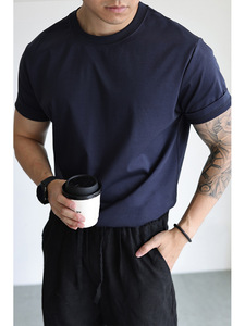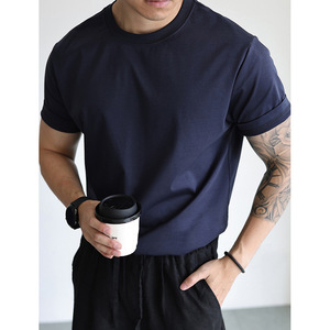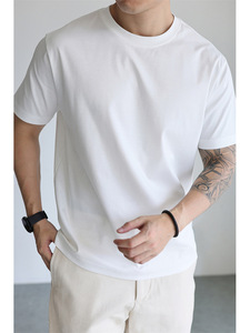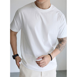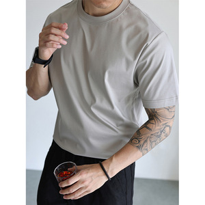ハイエンド 60 年代液体アンモニアシルケットマルベリーシルク半袖ラウンドネック Tシャツ 2025 夏無地通気性 7A 抗菌トップ男性用