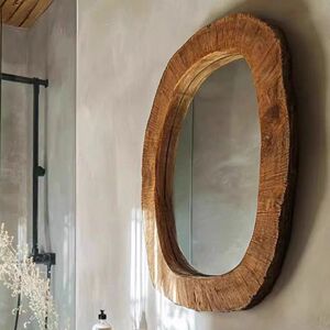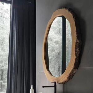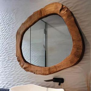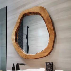特殊な形のバスルームミラー壁掛け不規則なバスルーム無垢材クリエイティブ装飾木製フレームミラー壁掛けバスルームミラー