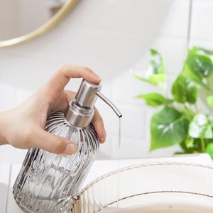 工場直接供給 420 ミリリットルガラス手指消毒剤ボトル透明プレス浴室シャワージェルボトルホテルシャンプーボトル