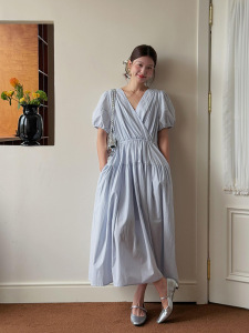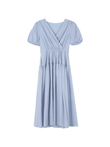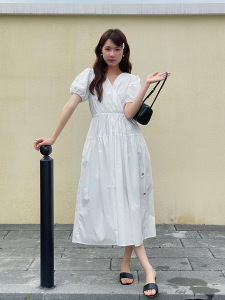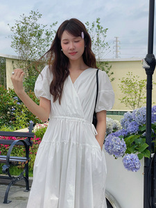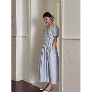 【泡白月光】歌銘レトロ韓系vネックウエストストラップワンピース女性夏中ロングスカートN137C