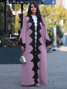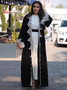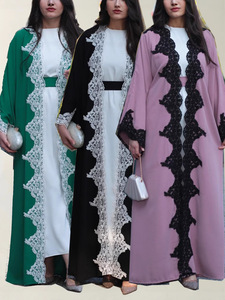 レースステッチングローブアマゾン中東ドバイサウジアラビア女装abayaカーディガンロングワンピーストルコ