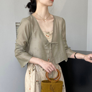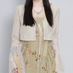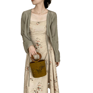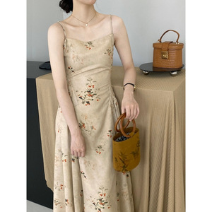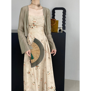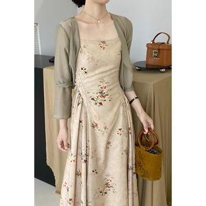 新中式连衣裙女夏季复古国风碎花吊带裙改良旗袍长裙+披肩两件套
